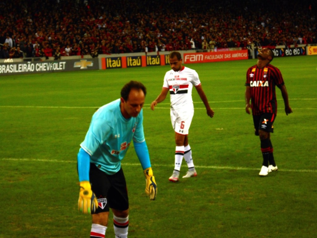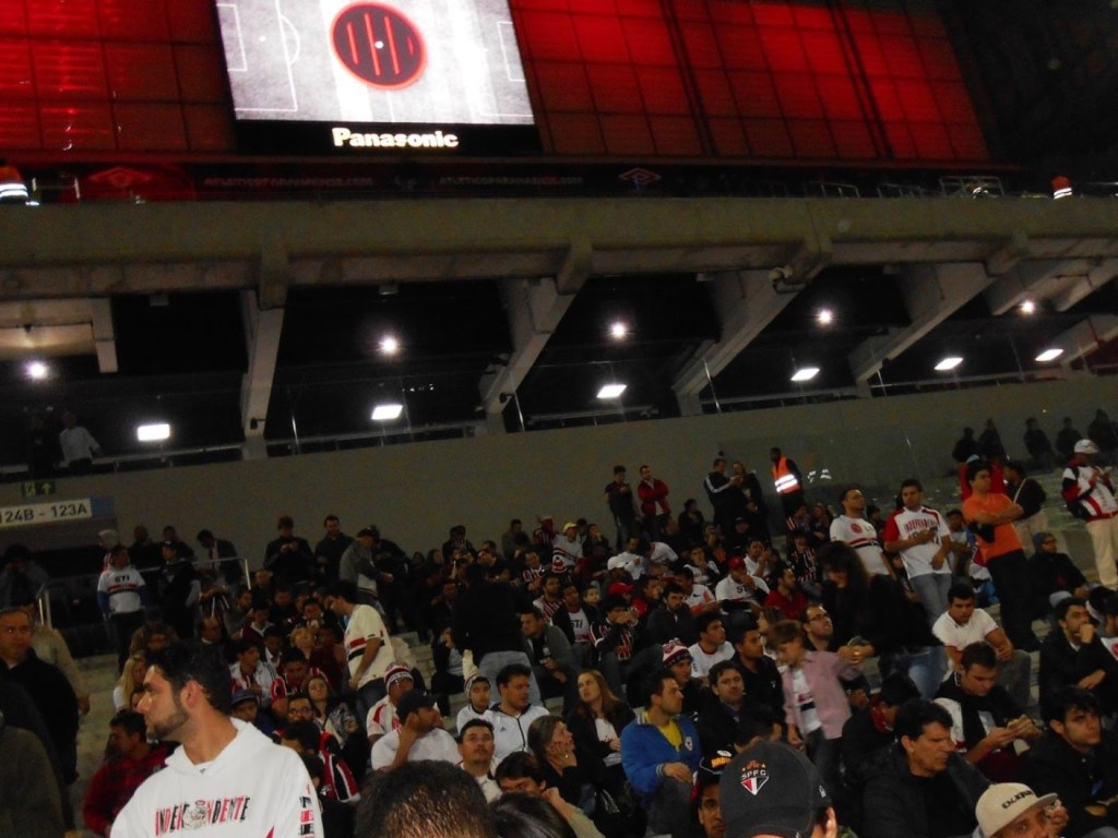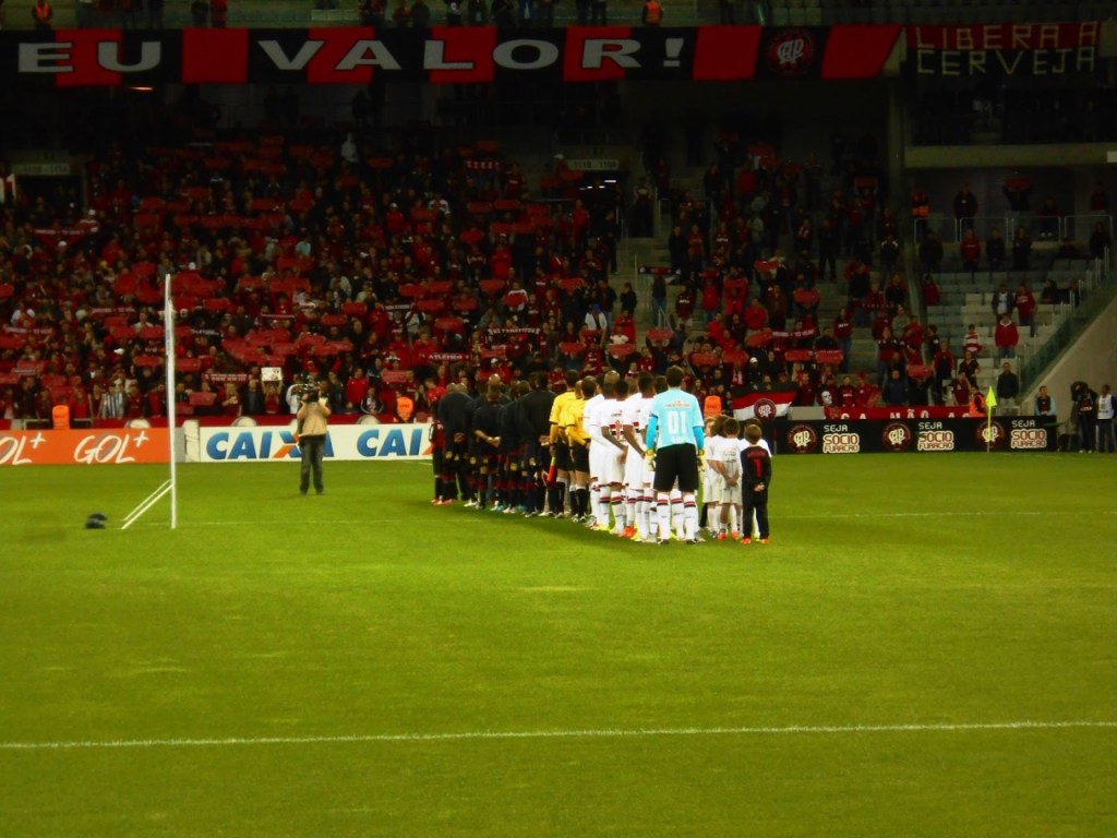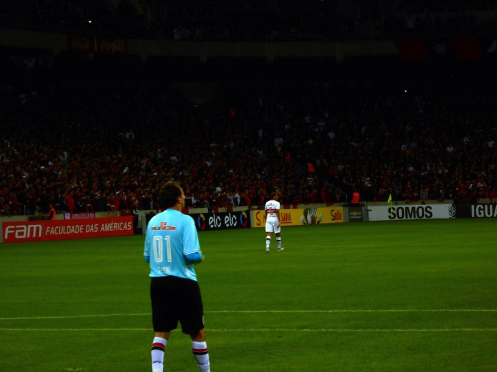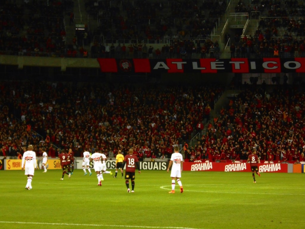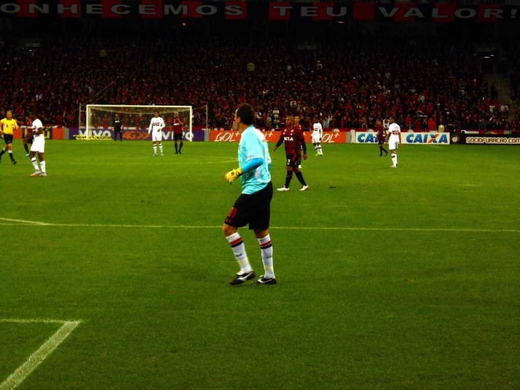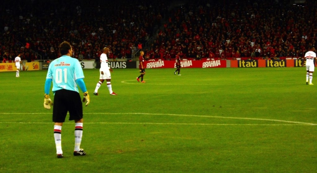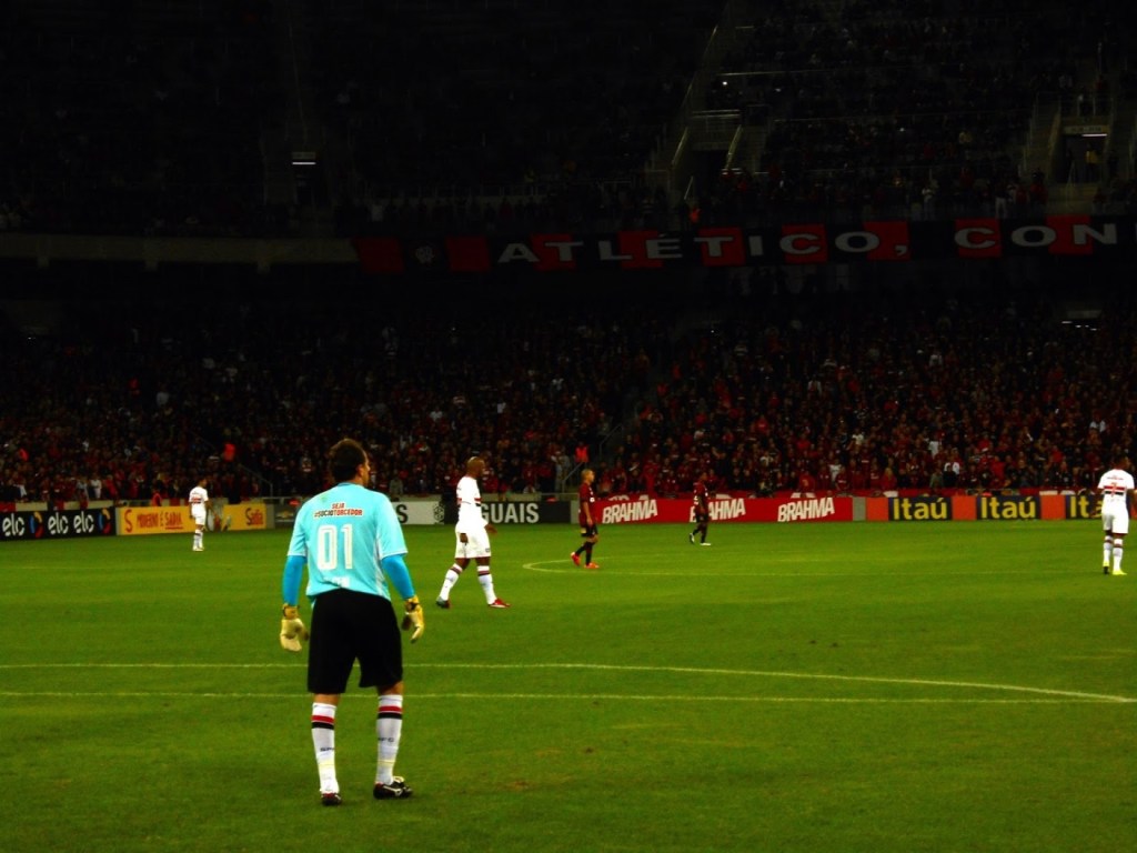 Fui até a Arena da Baixada para ver o jogo que começou às 22 horas. Achei que, por causa do horário, haveria pouca gente no estádio, mas ele estava cheio. O ingresso custou R$ 150, embora eu pudesse ter pago meia-entrada se tivesse doado sangue. Entrei e fui para a arquibancada dos visitantes, que fica atrás de um dos gols. Pude ver o Rogério de perto e tive a oportunidade de assistir, pela primeira vez, a um jogo da elite do futebol nacional. O jogo terminou 2 a 1 para o time da casa. Apesar do resultado, fiquei feliz porque consegui ver meu ídolo, assistir ao meu time jogando, visitar mais um estádio que sediou a Copa do Mundo e ainda comemorar de perto um gol do meu time no estádio.