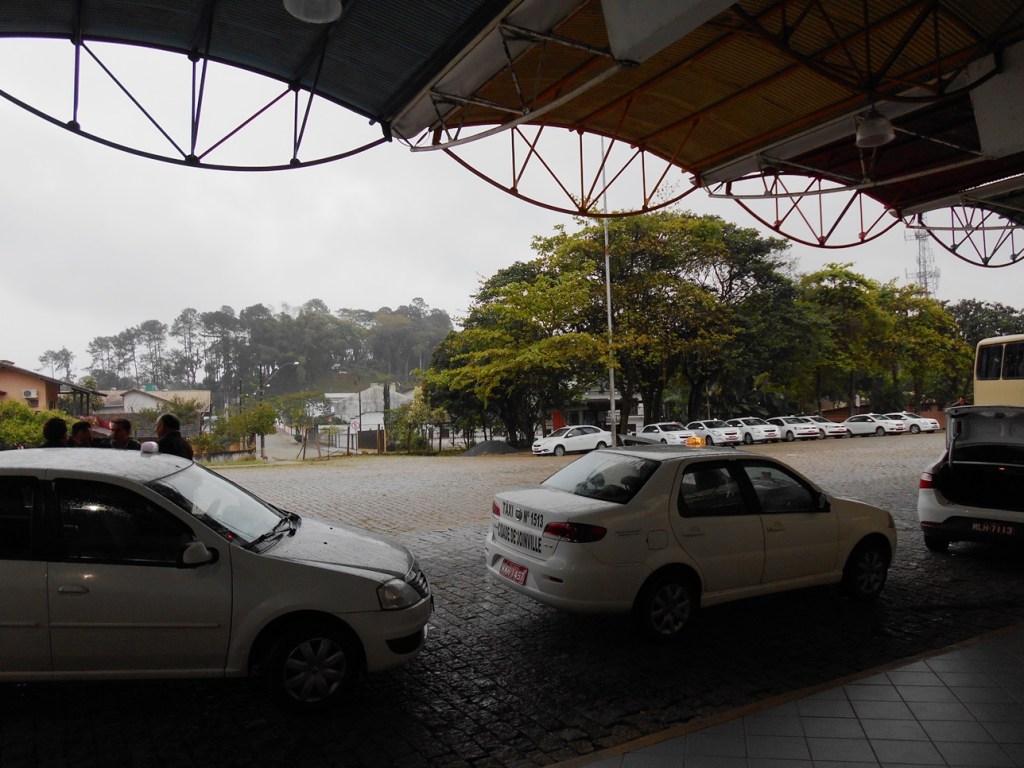 Viajei pela viação Catarinense. São duas horas de viagem de Curitiba para Joinville. Quando eu estava chegando em Joinville gravei um vídeo com a câmera da Proteste. Na rodoviária de Joinville eu comprei uma miniatura de caneca como uma pequena lembrança da cidade e duas passagens de ônibus urbano, mas nem cheguei a usar porque fiquei esperando o ônibus e como ele estava demorando muito eu desisti e peguei um táxi até o estádio.