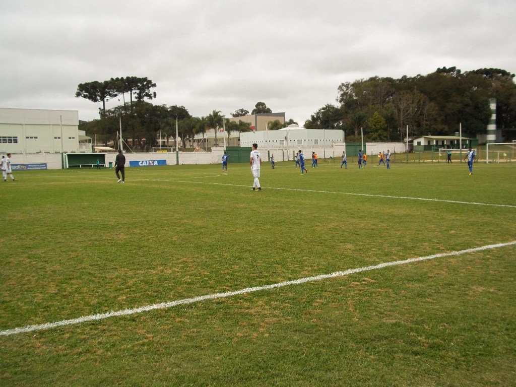 Moro perto do Centro de Treinamento do Coritiba Bayard Osna, mais conhecido como CT da Graciosa. Sempre passo de ônibus em frente ao local e tinha curiosidade de conhecer por dentro. Na manhã de hoje, fui assistir a um jogo do Campeonato Paranaense Sub-17, que começou às 10h30. O Coritiba venceu por goleada. Infelizmente, não consegui gravar um dos quatro gols.