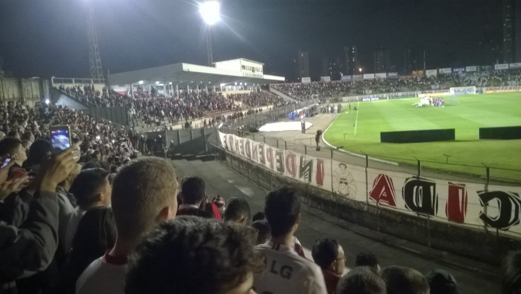 O jogo colocou o lanterna contra o líder do campeonato. Times na parte de baixo da tabela costumam se esforçar para surpreender os líderes. O São Paulo abriu o placar no início, mas o Paraná empatou. No segundo tempo, o São Paulo criou mais chances, mas não marcou, e o jogo terminou empatado. O Paraná está em má fase e pode ser rebaixado para a Série B, a menos que algo mude. A última vez que enfrentaram o São Paulo na Vila Capanema foi em 2007, com vitória do São Paulo por um pênalti de Rogério Ceni. Se o Paraná cair, não sei quando haverá outro jogo assim nesse estádio. O espaço para visitantes é pequeno, com vista ruim, então não consegui tirar boas fotos.