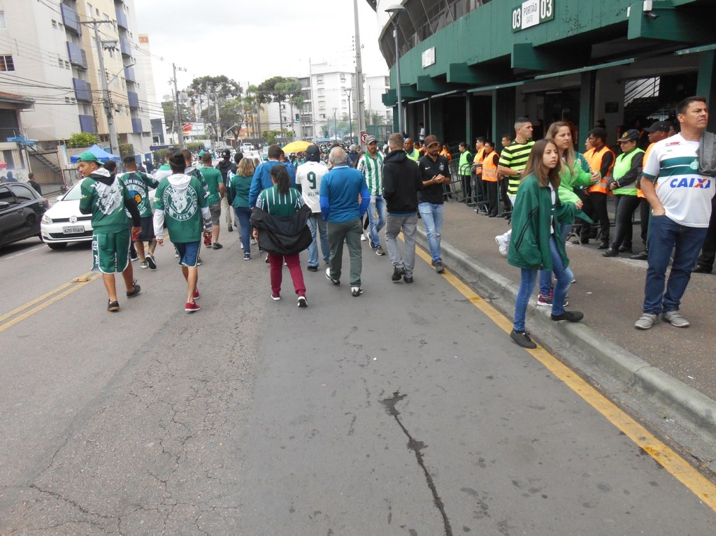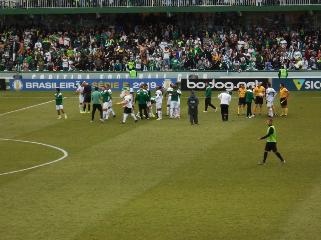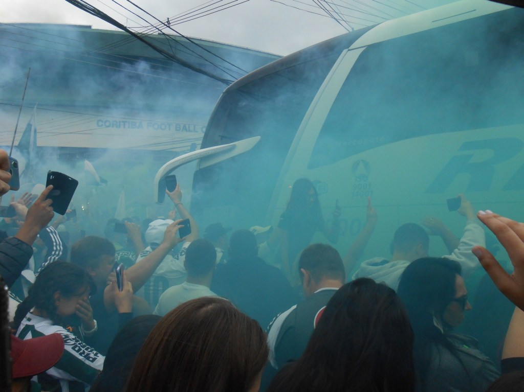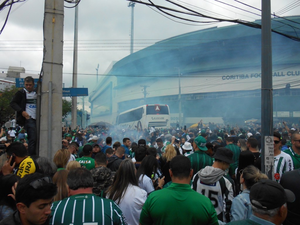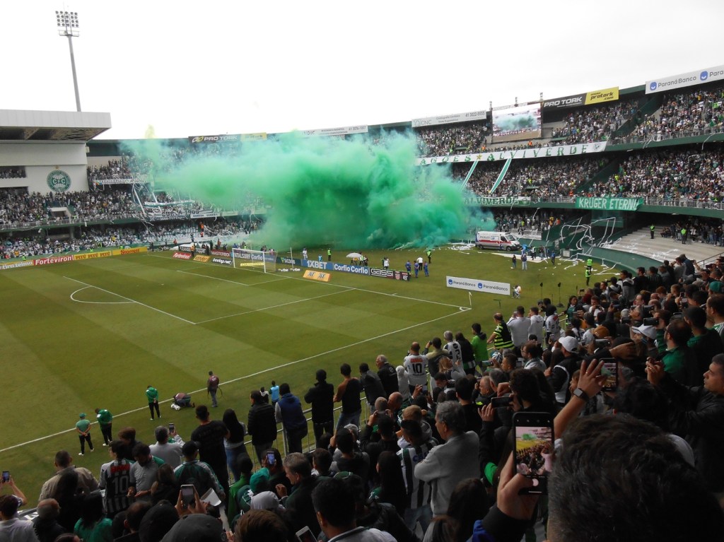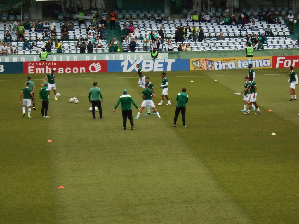 Antes do jogo, acompanhei a chegada do ônibus do time. Dentro do estádio, tentei ouvir a narração pelo rádio no início, mas desisti, pois o estádio lotado tornava impossível escutar, algo que talvez funcione em jogos menos cheios. Com um gol de falta, o Coritiba venceu e garantiu o retorno à Série A em 2020. No YouTube, acompanho o canal Futebol pelo Mundo, do Lauro. Ele esteve no jogo, gravou um vídeo, mas não o encontrei, já que estava em outro setor.