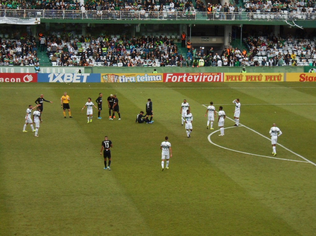 O Coritiba enfrentou o Bragantino no Couto Pereira, pela penúltima rodada da Série B. Cheguei ao estádio e os ingressos estavam esgotados, o que me deixou frustrado, pois queria muito assistir ao jogo. Pensei em ver a partida pela TV em um bar próximo, mas, após conversar com algumas pessoas na frente do bar, consegui comprar um ingresso de um torcedor que tinha um sobrando.