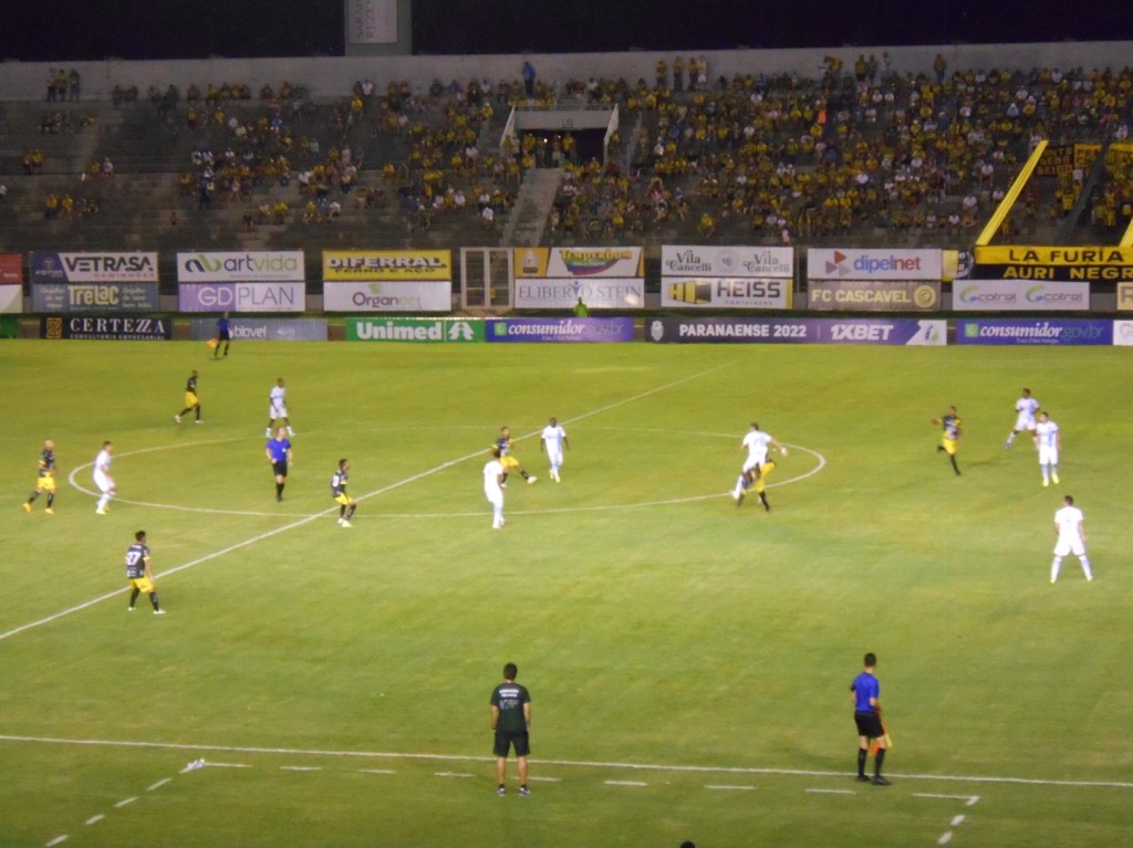 Hoje, após dois anos, finalmente voltei a assistir a um jogo no estádio. Fui ao Estádio Arnaldo Busatto, ao lado do Terminal Sudoeste, em Cascavel, para ver o confronto entre FC Cascavel e Londrina. Esses times disputaram a final do Campeonato Paranaense do ano passado, mas, como havia acabado de chegar à cidade, assisti pela televisão. O Londrina foi campeão vencendo em Cascavel.