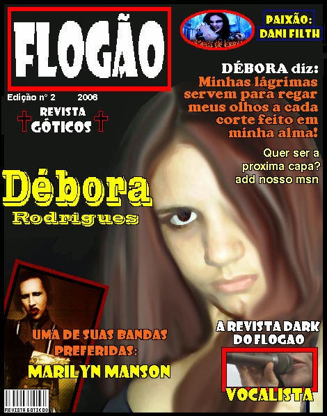 Também havia uma página que criei, mas não dei continuidade: um blog chamado Gótico Brasileiro, cujo endereço no Blogspot está desativado, havia uma montagem que fiz no Fireworks. No Flogão, eu também acessava duas páginas que eram revistas virtuais sobre góticos: a Gothic Magazine e a Revista Góticos. Consegui encontrar, em outras páginas, duas de suas capas.